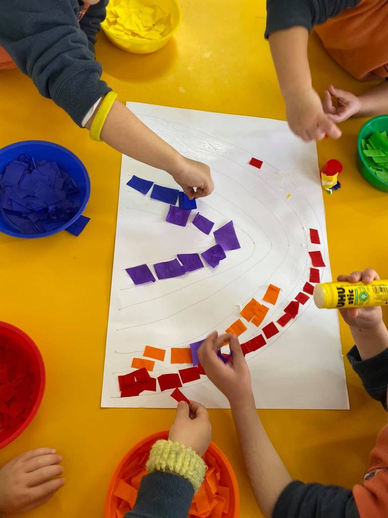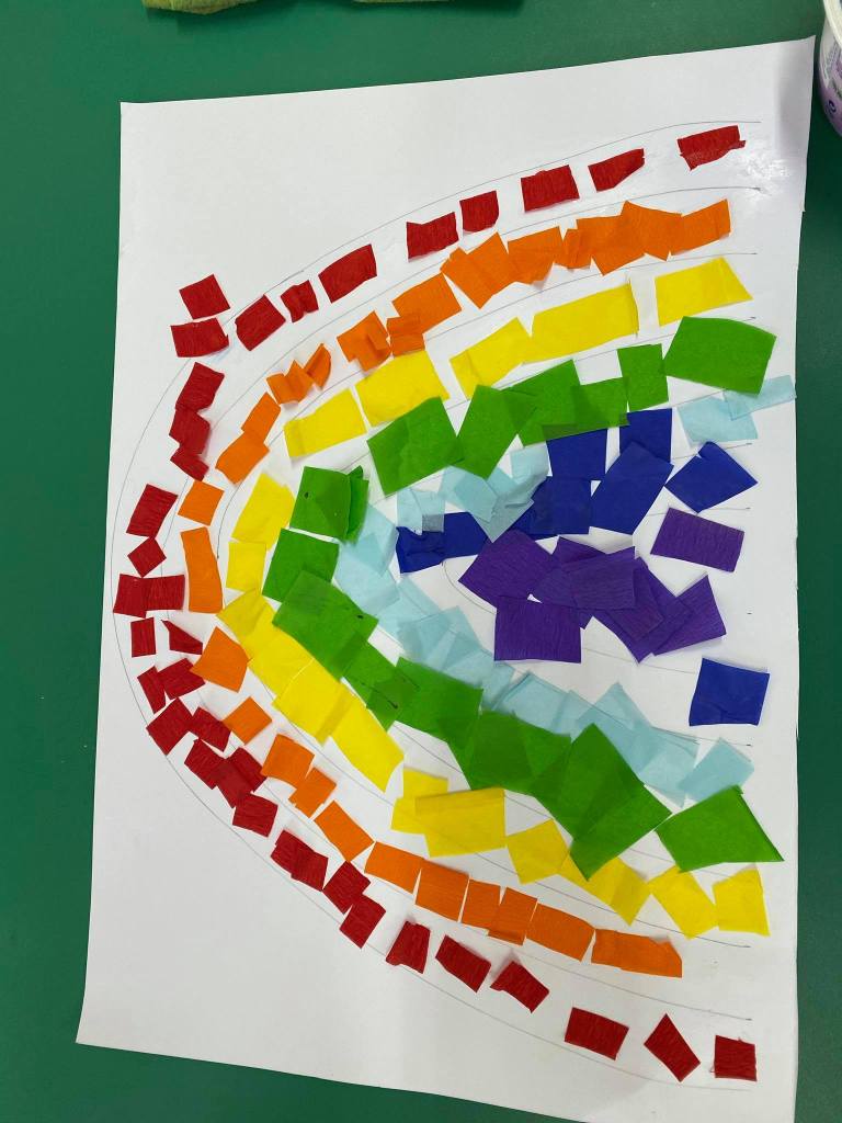 Using different resources, the children were able to learn about the colours that are found in a rainbow. Furthermore, the children used their sensory and creative skills. The resources used during this activity were: