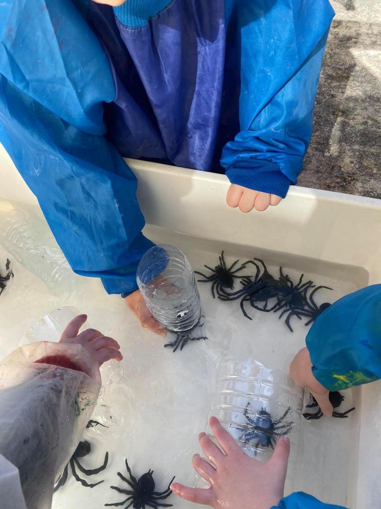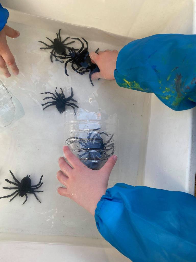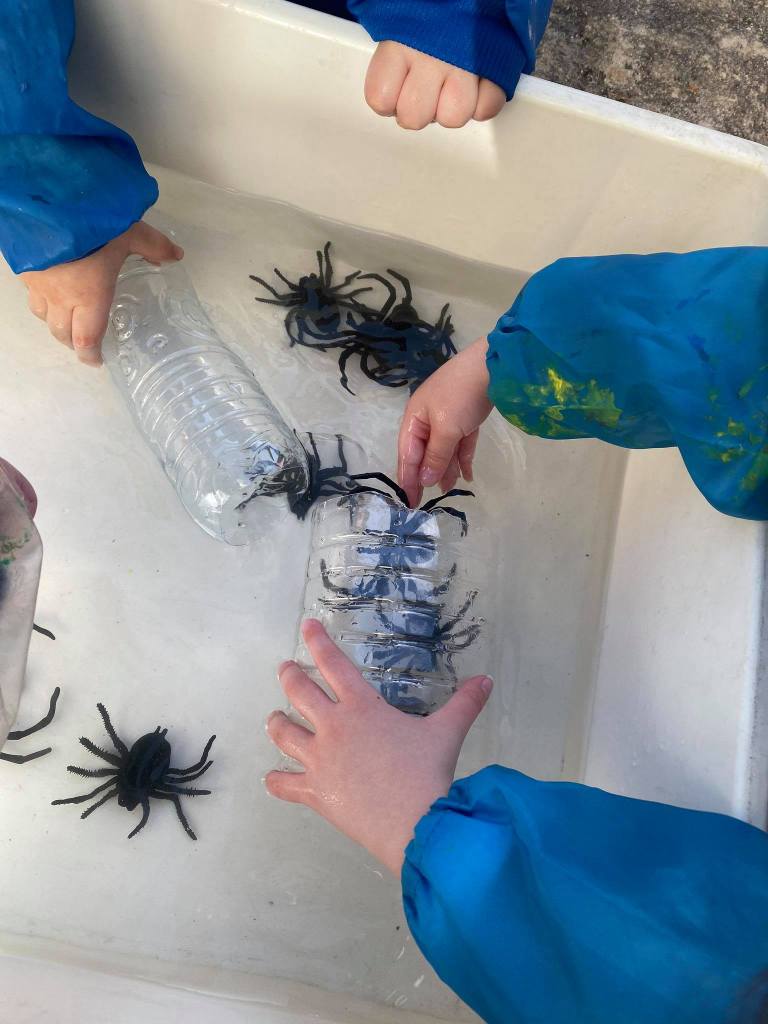 In concluding the Itsy Bitsy Spider Theme, I planned for an activity which consisted of water play. The children enjoyed playing with the water so it is a great idea to try it at home as well if you have a yard or even on the roof, obviously, accompanied by adults.