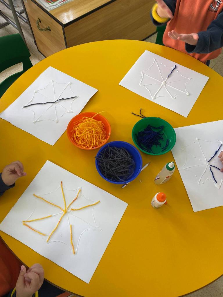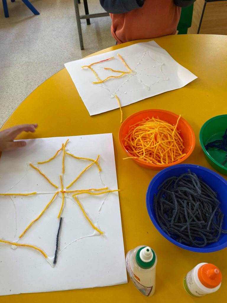 Following the superheroes-theme, the children showed a lot of interest in a specific superhero—> SPIDERMAN. We decided to learn and work on a project consisting of spiders. Luckily, none of the children are afraid of spiders (except me!) and they were so excited to create their own sticky webs through this sensory activity.