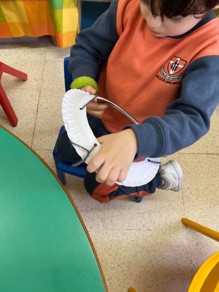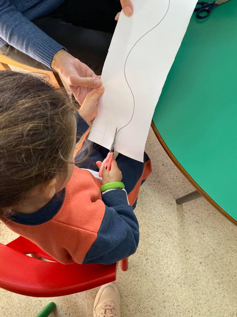 You can try a similar activity at home, by providing a simple template for the children to follow using the scissors. It is advised that they are accompanied by adults to be safe.