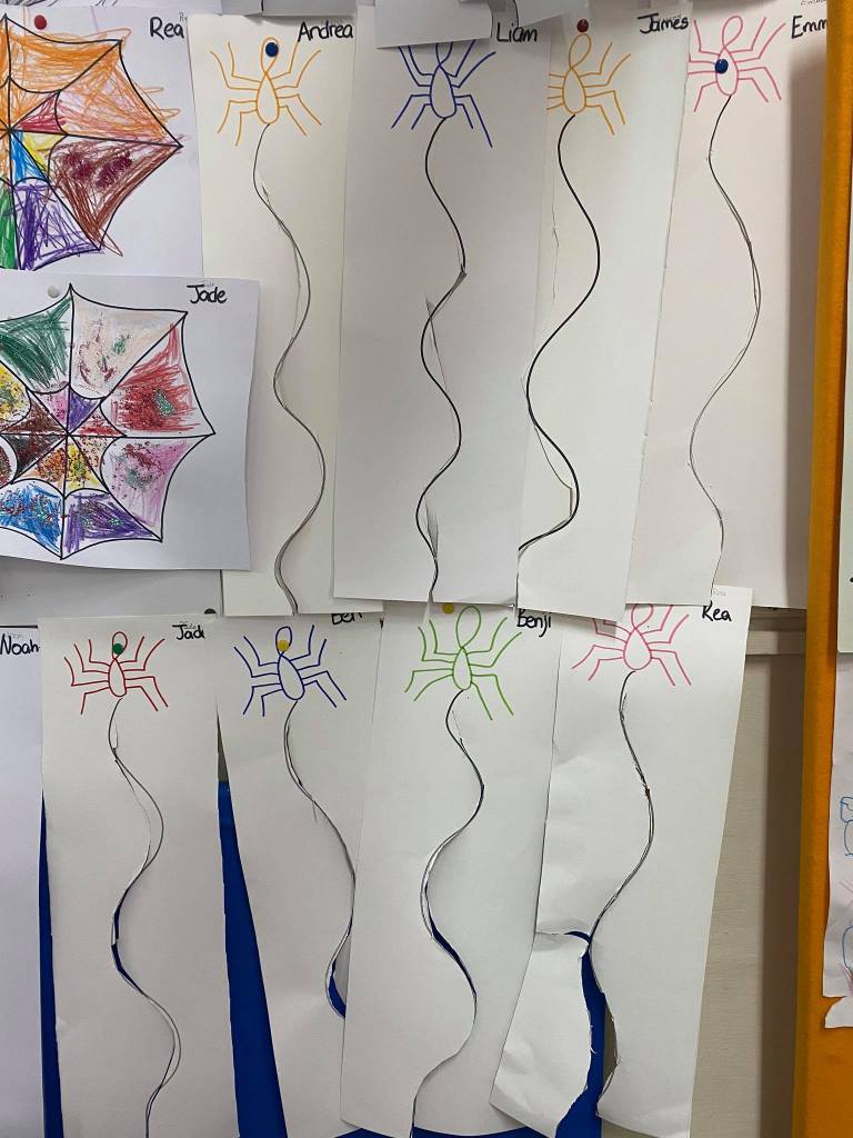 During this activity, the children were able to enhance their fine motor skills while pretending to thread their own web.