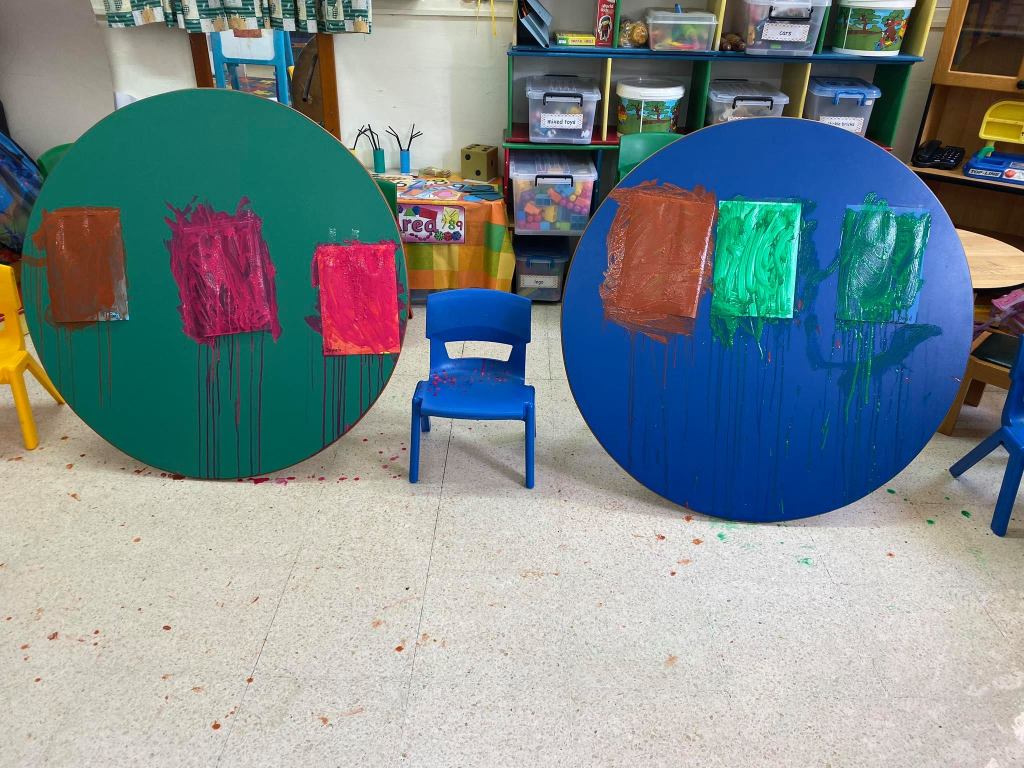 During this activity, the children showed their creativity while creating art and let gravity do its work. See the pictures below, HOW MESSY IT WAS.